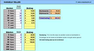 Op dit tab-blad kunt u op een gemakkelijke manier het kasgeld tellen.