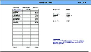 In het Jaaroverzicht worden per Categorie de Ontvangsten en de