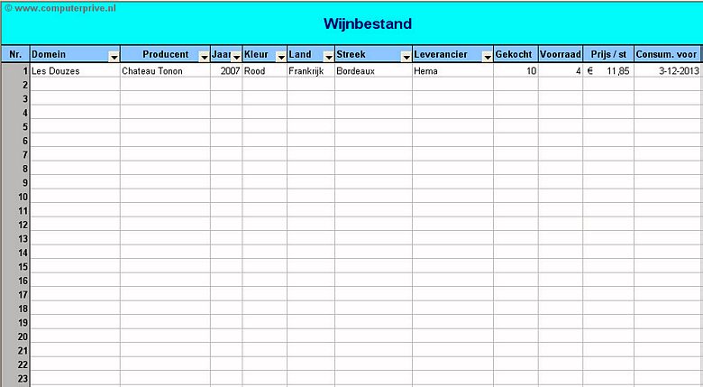Met dit wijnbestand kunt u uw voorraad wijn bijhouden. Nadat u alle